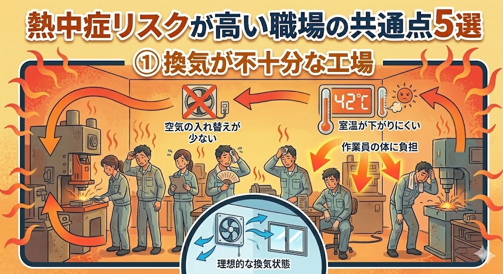 そこで今回は・・・工場に多い熱中症リスクの共通点を5つ取り上げ